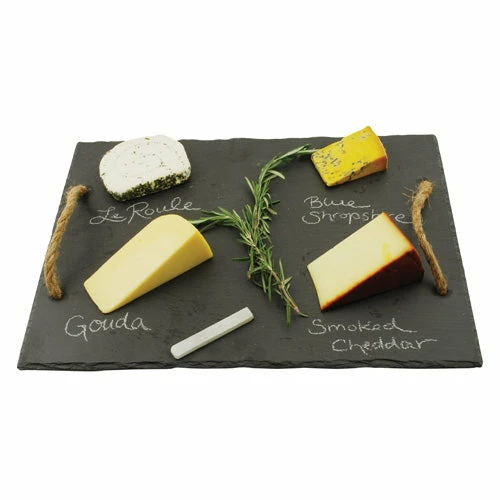 The Vintage & Vine Slate Board is the perfect piece for your next wine and cheese party! The clean slate makes for a beautiful display and you can label your snacks with the soapstone chalk that is included! Carry the tray with ease using the hemp rope handles, which makes this board practical and decorative.
