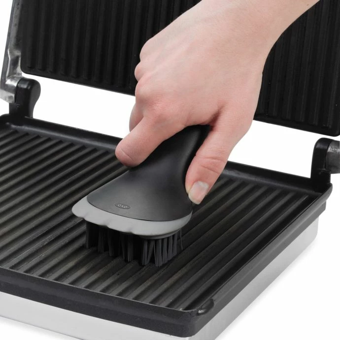 Clean your cast iron pan, panini press, indoor grills or waffle makers easily with this handy brush. Its soft, flexible bristles are safe on nonstick cookware and the silicone wiper blade removes food and grease without damaging delicate surfaces.