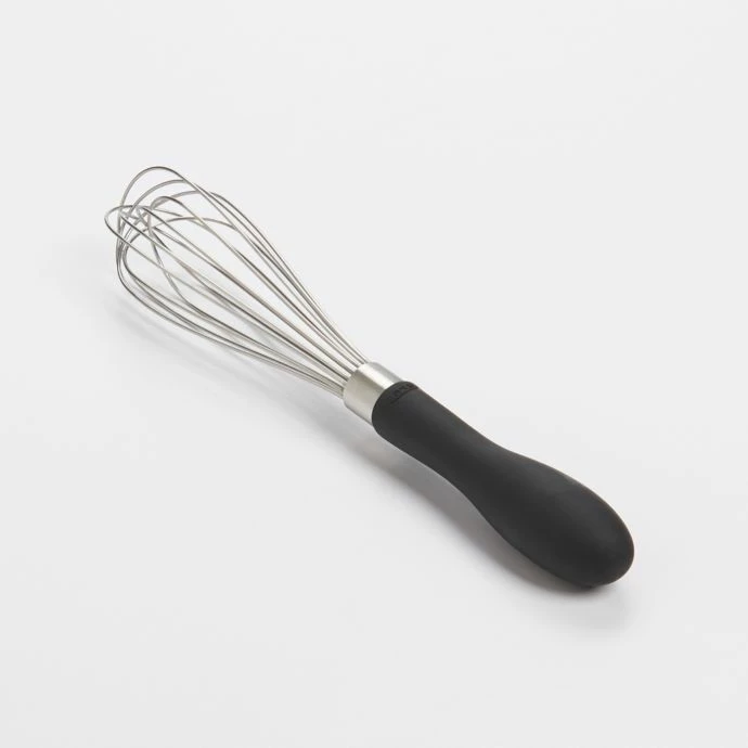 Whisk features polished stainless steel wires and a teardrop shaped handle that fits comfortably in the palm of your hand. The soft handle won’t slip out of your hand, even when wet.