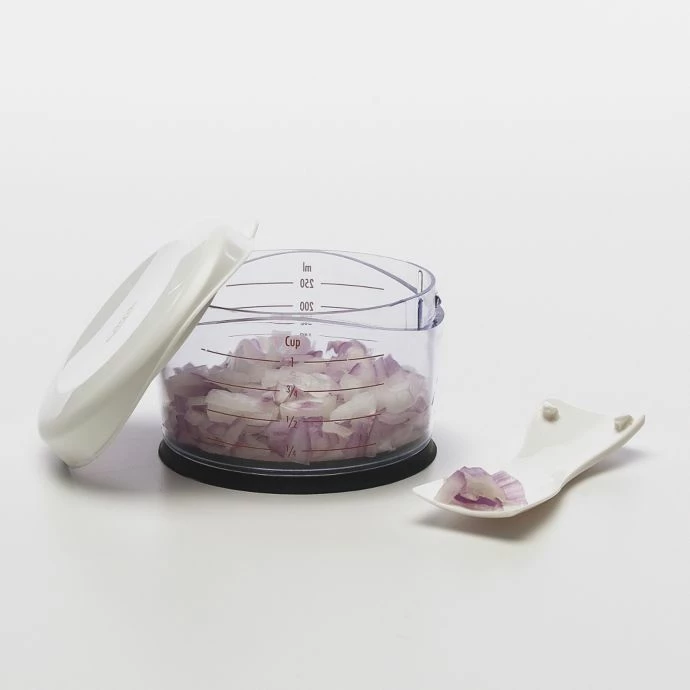 - Ingredients can either be chopped in the enclosed, removable cup or directly on a cutting board