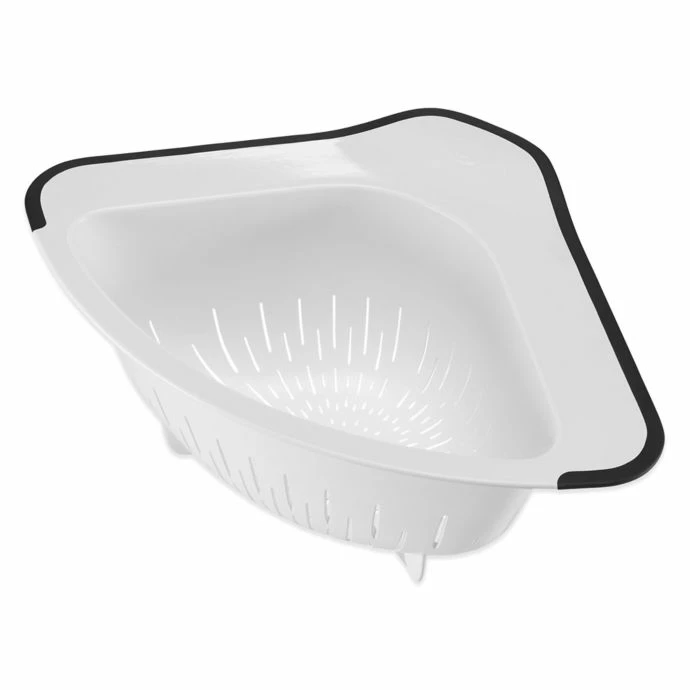 - Hangs off the sink corner for convenient, space-efficient straining