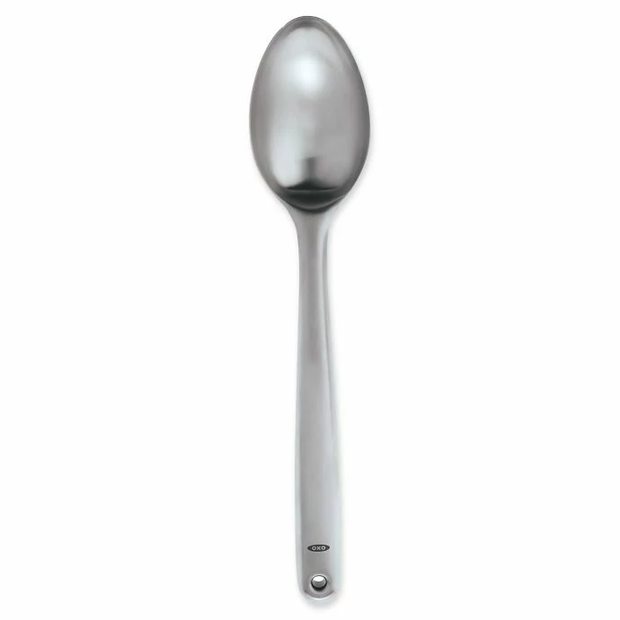 - The OXO Stainless Steel Spoon is ideal for stirring and serving a variety of foods and sauces