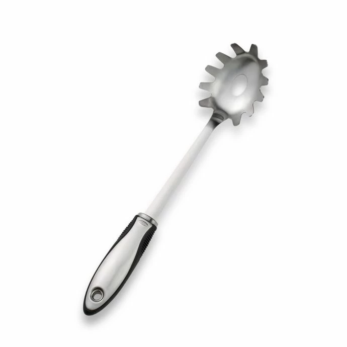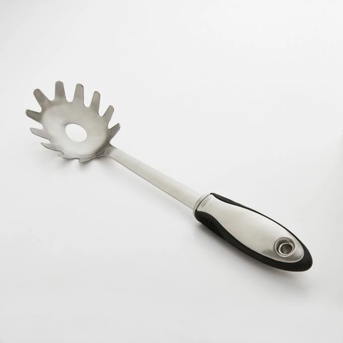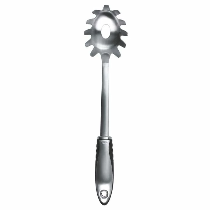 - Sleek, brushed stainless steel handle features flexible non-slip fins for comfort