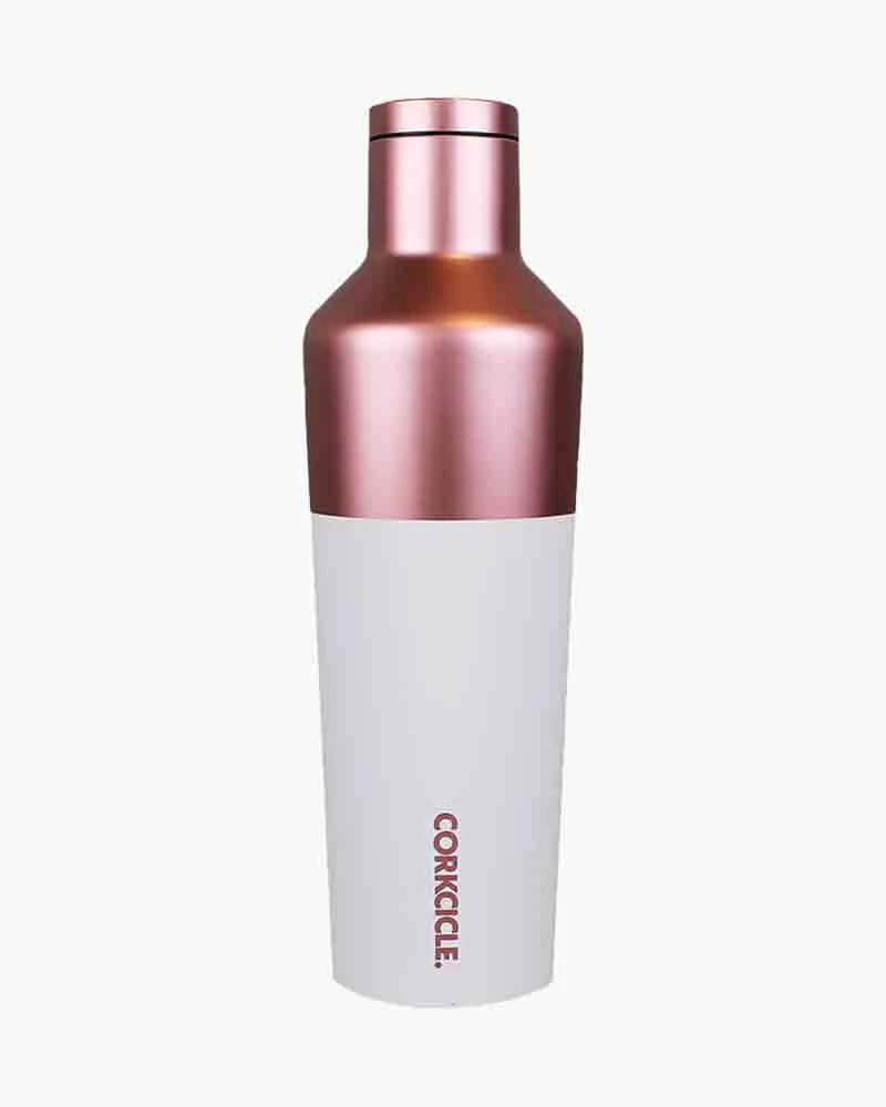 Triple insulation, stainless steel, and a vacuum seal lets this Corkcicle Canteen in a Color Block Modern Rosรฉ finish keep your beverage cold for 25+ hours and hot for 12 hours! Its sleek, stylish design is easy to grip and fits most vehicle cup holders, making it a great choice for spill-free sipping on the go.