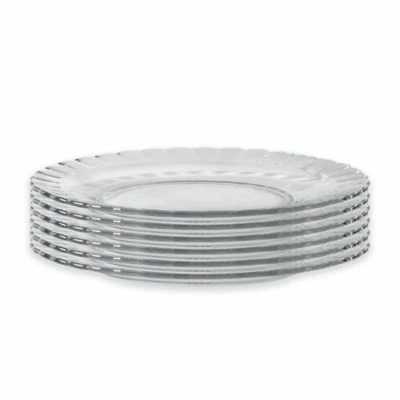 The clear constructed Paris Dinner Plates from Duralex features scalloped edges and a stackable design for simple storage. This set of 6 are dishwasher and microwave safe for everyday functionality to complement a modern tablescape.