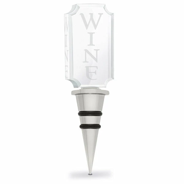 Precision etched acrylic bends and reflects light brilliantly. Not as cumbersome as crystal tops, this acrylic stopper is easy to handle, yet is still substantial with it’s polish metal base. Features double rubber ring seals. Bring more elegance to the table. Dimensions: 1-1/4″ x 5-1/4″.