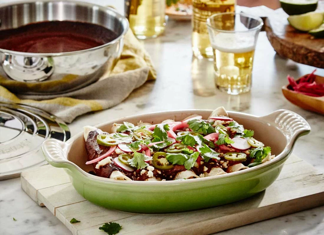 For recipes that call for a crisp topping, the Heritage stoneware oval au gratin dish provides a wide, shallow cooking area in a variety of sizes, exposing ingredients more directly to heat.