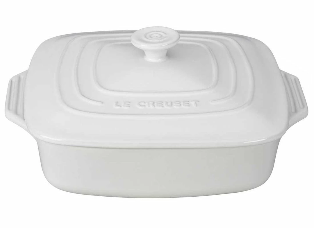 The lid of the 2 3/4 qt. square casserole locks in heat and also fits the 2 1/5 qt. square dish β making it a versatile addition to any kitchen.