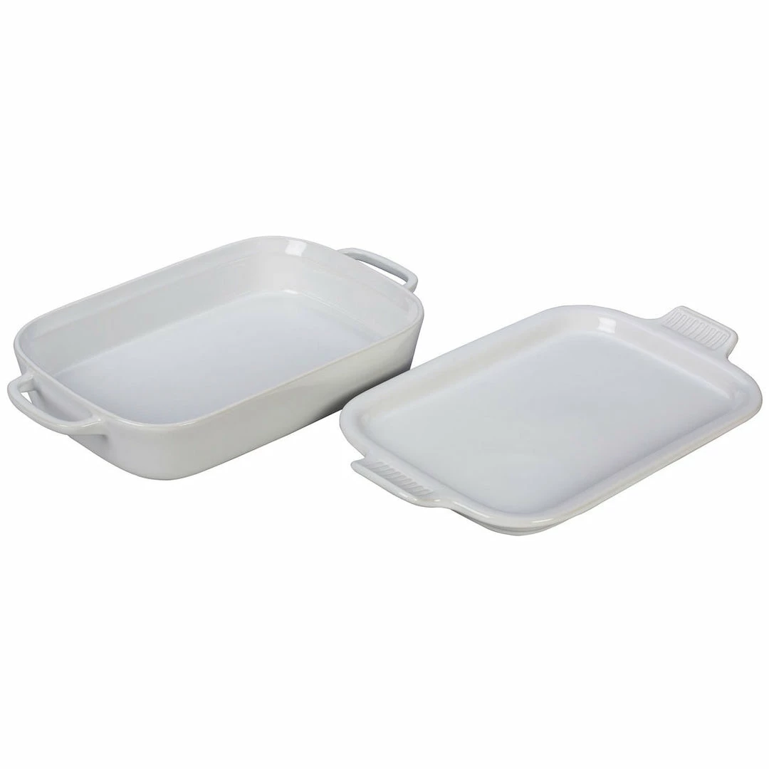 Le Creuset stoneware casseroles offer superior, highly functional performance in the oven and at the table. These durable stoneware dishes include tight-fitting lids and easy-to-grip grooved side handles, and are designed for a multitude of kitchen tasks, whether baking desserts, oven-roasting meats, broiling fish or simply marinating before cooking.