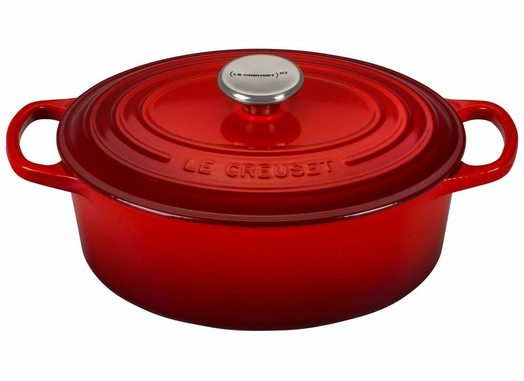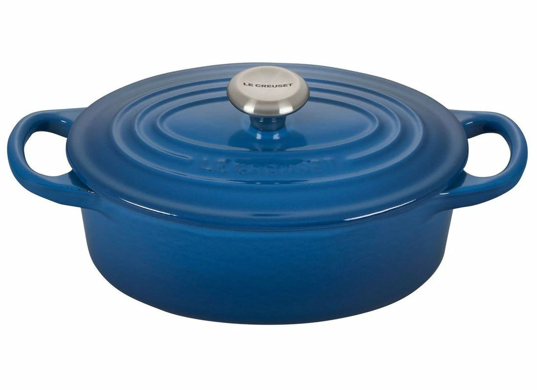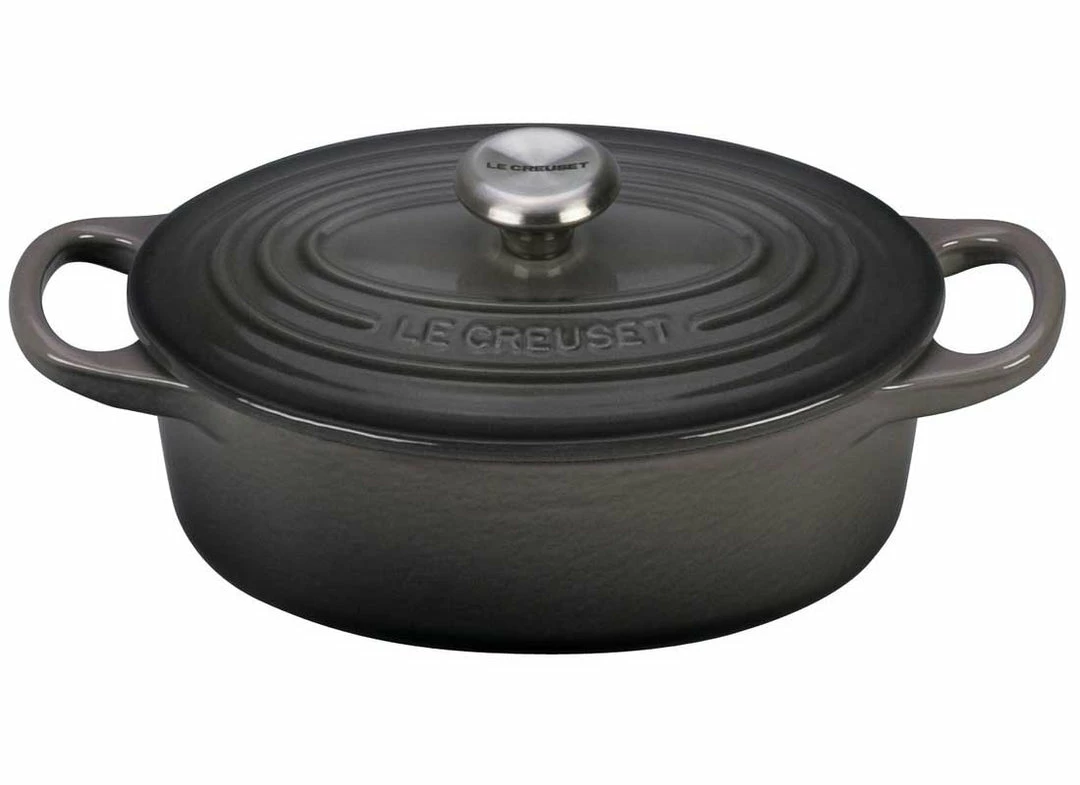 The iconic Le Creuset oval Dutch oven is indispensable in the kitchens of home cooks and professional chefs alike. Long recognized for its strength and durability, cast iron is the prime material for slow-cooking, braising and roasting, thanks to its ability to maintain even and consistent heat. The enameled oval Dutch oven needs no seasoning, and it’s suitable for both stovetop and oven use. The oval shape is particularly suited to longer cuts of meat or poultry.