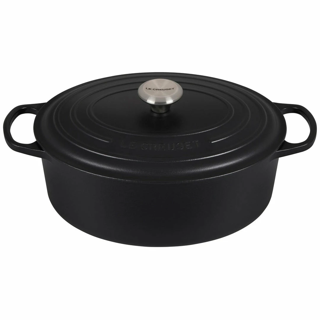 The iconic Le Creuset oval Dutch oven is indispensable in the kitchens of home cooks and professional chefs alike. Long recognized for its strength and durability, cast iron is the prime material for slow-cooking, braising and roasting, thanks to its ability to maintain even and consistent heat. The enameled oval Dutch oven needs no seasoning, and itβs suitable for both stovetop and oven use. The oval shape is particularly suited to longer cuts of meat or poultry.