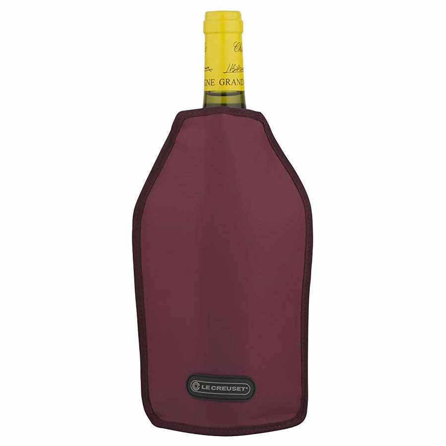 Forget drippy ice buckets. This stylish insulating Le Creuset Universal burgundy Wine Cooler Sleeve chills wine and maintains it at an optimal temperature. This durable nylon Le Creuset Universal burgundy Wine Cooler Sleeve houses two gel packs that follow the shape of a bottle for maximum cooling contact. Not only will the Le Creuset Universal burgundy Wine Cooler Sleeve keep a bottle cold, it will chill a bottle from room temperature to serving temperature and still keep it cool throughout the evening. The elastic sides of the Le Creuset Universal burgundy Wine Cooler Sleeve gives the wine or champagne bottle a snug fit to maximize the cooling process. The Le Creuset Universal burgundy Wine Cooler Sleeve is perfect for picnics or outside events. The Le Creuset Universal burgundy Wine Cooler Sleeve makes a great hostess gift!