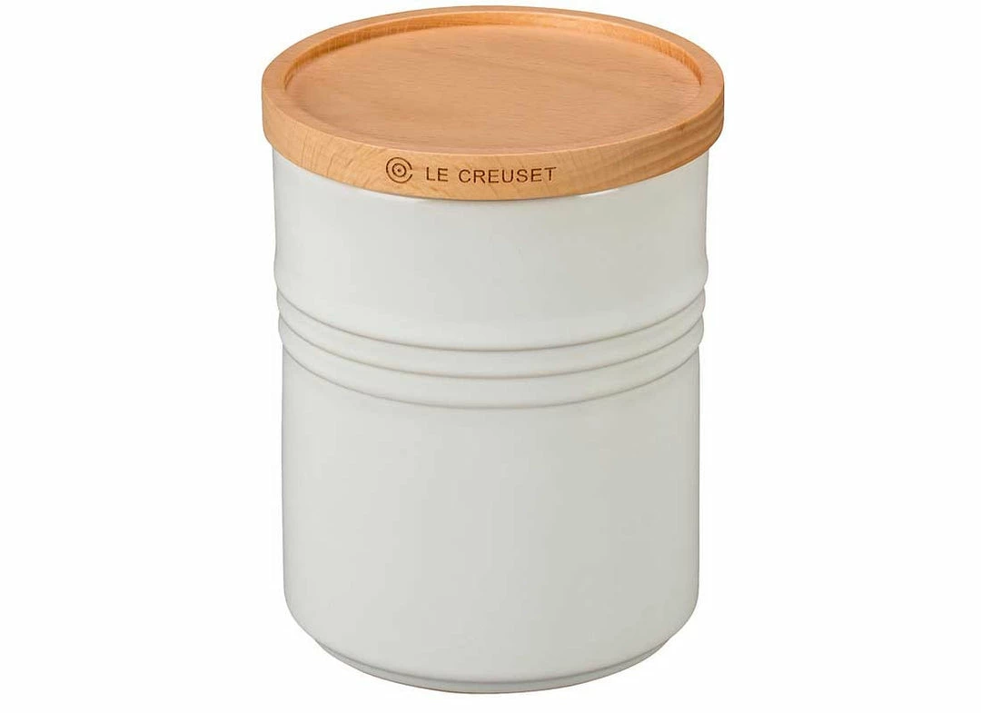Available in five different sizes for maximum storage efficiency, these sleek, colorful canisters come with a tight-sealing beech wood lid that allows for easy stacking on the counter or in cabinets. Air-tight silicone gaskets and a hard-wearing enamel finish make these canisters as functional as they are beautiful.