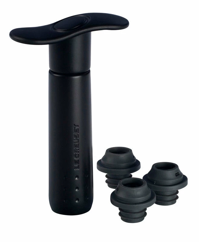 The wine pump creates a firm seal that preserves the flavor and aroma of opened wine for up to a week. Included are three universal-sized vacuum stoppers.