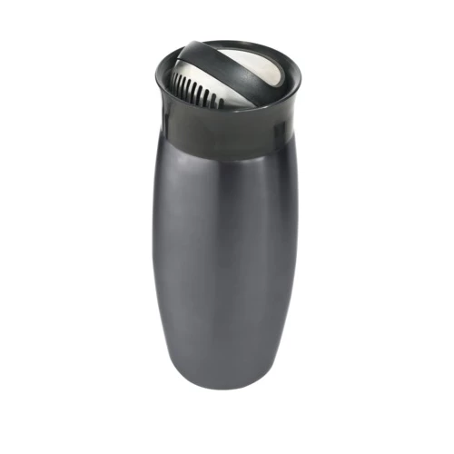 Do away with the usual strainer and lid with the Metrokane Houdini Flip-Top Cocktail Shaker. With just a touch of a finger, the 24 oz. Metrokane Houdini Flip-Top Cocktail Shaker opens and closes, supplying ease of use in a beautiful package. The Metrokane Houdini Flip-Top Cocktail Shaker was developed over the course of two years and employs hydraulic engineering applied to hi-tech sealing materials. The Metrokane Houdini Flip-Top Cocktail Shaker is dishwasher safe. The Metrokane Houdini Flip-Top Cocktail Shaker is the first real innovation in cocktail shakers since prohibition.