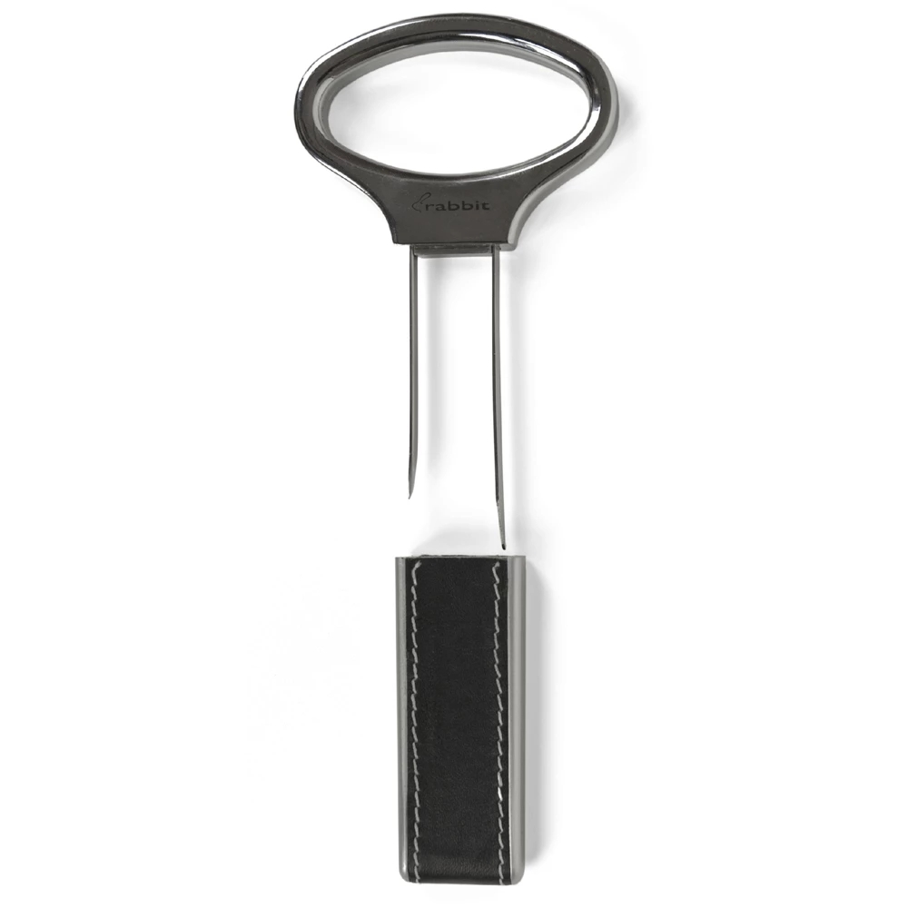 Known commonly as the Butler’s Friend, this two-pronged, twisting cork pull design has long been the choice for extracting dry, brittle corks from older bottles. By Sliding the prongs of the Metrokane Rabbit Ah-So carefully between the neck and cork, the adhesion between the two is broken making the cork easier to remove. The large ergonomic handle and a built-in bottle opener, the Metrokane Rabbit Ah-So features a two-pronged design to reomve corks – and can even replace corks for continued aging.