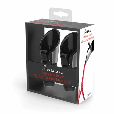 The Rabbit Stainless Steel Wine Pourer with Stopper allows you to both serve and seal your favorite wine while bringing a touch of elegance to your tabletop. Simply place the Rabbit Stainless Steel Pourer with Stopper into your bottle of wine and you have a drip free pourer. When the night has ended, simply flip the stopper closed for an air-tight wine stopper to seal your left over wine for another day!