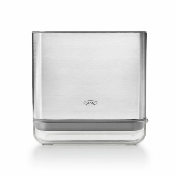 Clean up your sink area and keep it neat with the convenient OXO Good Grips Sink Caddy. Constructed from sleek stainless steel, this slim design fits in tight spaces and won’t take up a lot of counter space. Ideal for holding soaps, sponges, and more.