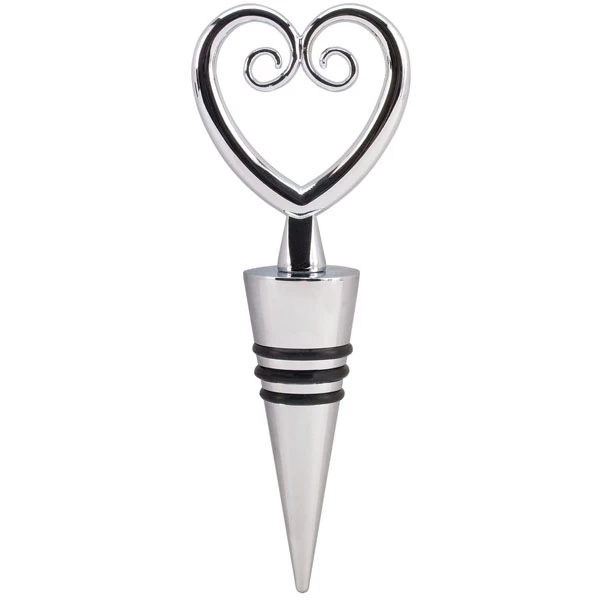These wine stoppers are all heart. These Heart Bottle Stoppers are surely the rage and these wine stoppers will add a memory-filled moment to each bottle your guests uncork. The Heart Bottle Stopper are modern and practical, these sturdy stoppers feature a perky molded chrome heart shape on top of a chrome base wrapped with a thin black liner for a snug fit.
