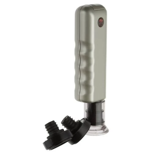 A technical breakthrough that makes preserving the contents of a partially consumed bottle of wine easier than ever before. No more exhausting up-and-down pumping required! Just position the neck guide over the inserted sure-seal stopper, push down gently and the battery operated pump automatically removes the air that breaks down fl avor. And the stopper tab lets you know when the vacuum seal is activated; the red ring disappears when the seal is complete. You actually see it working! Use with virtually any wine bottle, including fl anged rim designs. Set includes battery operated pump and 2 reusable sure-seal stoppers. 4 βAAβ batteries (not incl.) L’Objet & LeVin Wine Accessories are wine lover’s tools forged in traditions and inspired by innovation. Just like the wines of the Napa Valley. L’Objet & LeVin Wine Accessories are conceived for the connoisseur and novice alike, this comprehensive collection of corkscrews,serving pieces and storage equipment will add to the enjoyment of any vintage. Every L’Objet & LeVin wine accessory is custom designed for ease of use and broad aesthetic appeal. Ergonomically contoured handles and cleverly engineered mechanisms ensure trouble free operation. A contemporary look, highlighted with classical details and rich materials, ensures compatibility with any home decor.