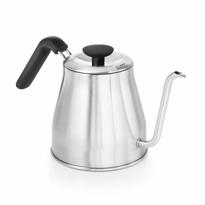 Boasting a long, thin gooseneck design with a narrowed, tapered mouth for precision pouring, the OXO Good Grips Pour-Over Kettle makes a great addition to your kitchen. Made of durable stainless steel, this kettle produces steady, consistent water flow.
