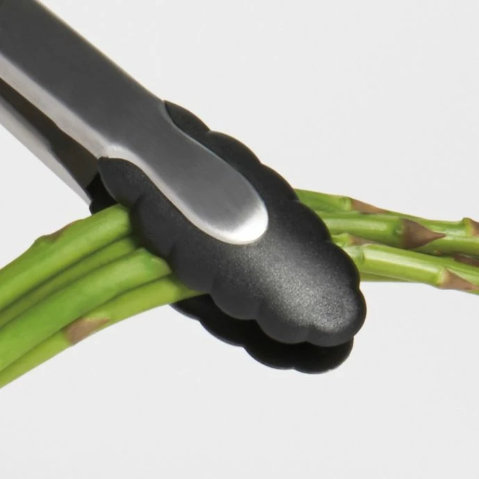 Tongs are perfect for nonstick cookware. They have a sturdy stainless steel construction, soft-grip handles and nylon heads that won’t harm your cookware.