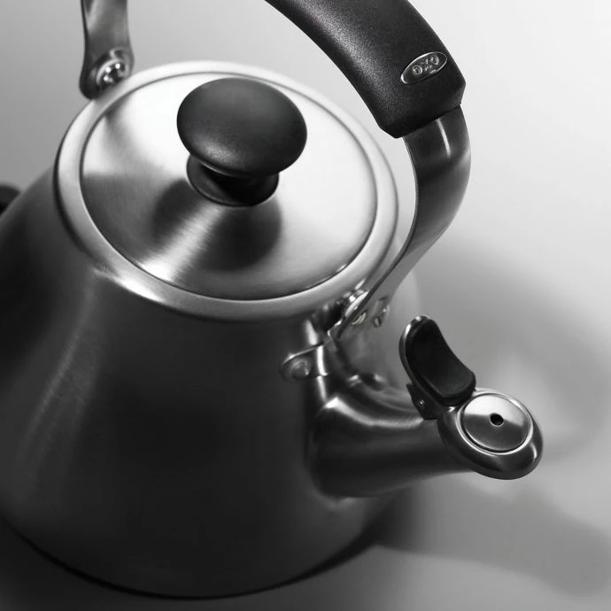 Make tea in style with this traditional-shaped whistling tea Kettle. The kettle features silicone touch points on the spout cap and handle to help resist heat.