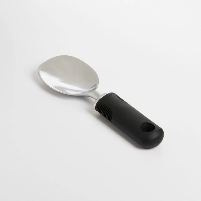 - OXO’s Ice Cream Spade has a flat, wide blade to scoop ice cream with ease and a cushioned non-slip handle that makes it as comfortable as it is easy to use