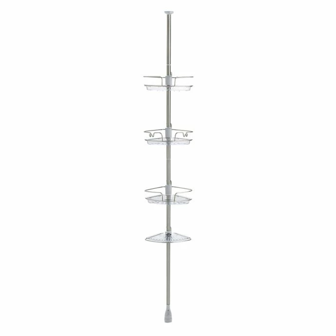 The OXO Good Grips Lift & Lock Pole Caddy features the Lift & Lock mechanism that allows safe and easy installation without any tools. There’s 3 adjustable bins and 1 adjustable shelf that easily mount and adjust without removing pole.