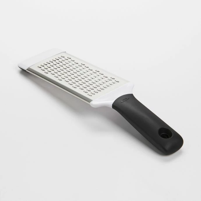 OXO Good Grips® Graters are an essential cooking companion. Etched, bi-directional blades provide a sharp grating surface to make grating faster and easier.