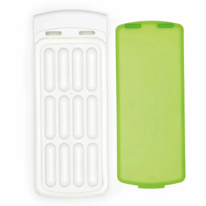 The innovative silicone lid of the OXO No-Spill Ice Stick Tray ensures that water won’t drip out as you carry it from the sink to the freezer. It also keeps the ice from absorbing freezer odors and allows you to stack other items on top.