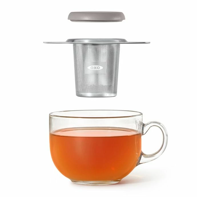 This handy OXO Good Grips Stainless Steel Tea Infuser allows you to brew a perfect cup of your favorite loose tea anytime. Composed of a stainless steel infuser with slip-resistant silicone platform and a lid that can double as a drip catcher.