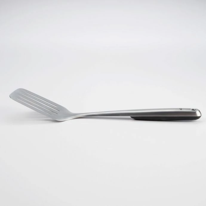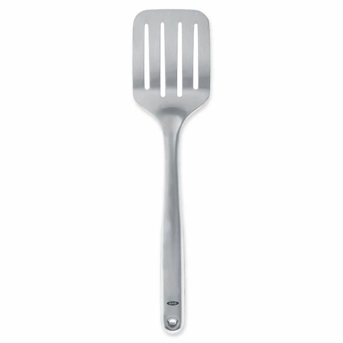 With a broad surface that is ideal for flipping pancakes or burgers, the OXO Stainless Steel Turner is beautiful, functional, and durable. Its perforations drain away cooking fat and the soft, nonslip handle is comfortable to use.