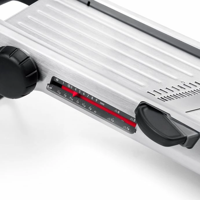 A wide range of cutting options and safety features are built into the OXO Steel Chef’s Mandoline 2.0. It performs straight, crinkle and waffle cuts, even on soft foods like tomatoes, while keeping your hands away from the blades.