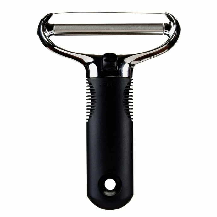 The OXO Good Grips Cheese slicer allows you to cut thick or thin slices simply by adjusting the angle of your wrist. The tension wheel allows you to tighten the wire when loose.