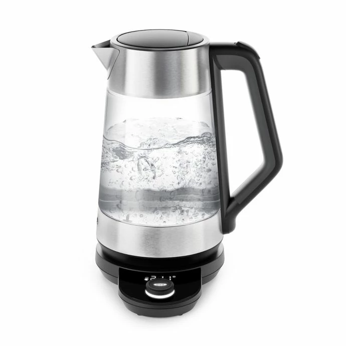 The OXO Adjustable Temperature Kettle makes boiling and pouring water safe and easy. The water is heated and held to any temperature between 170Β° and 212Β° F; the design is cordless and has a silicone base for protecting surfaces.