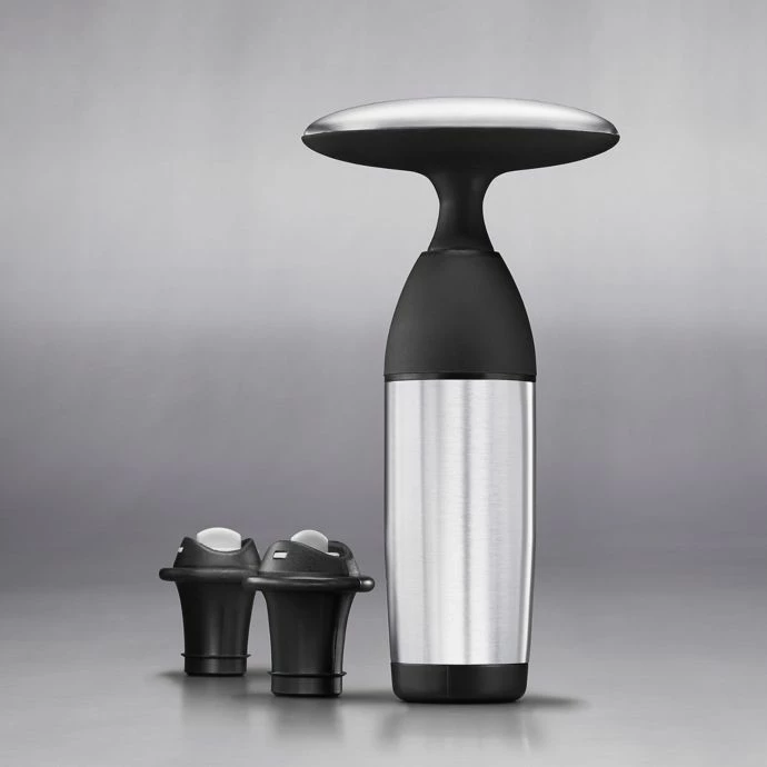 - The OXO SteeL Vacuum Wine Preserver with 2 Stoppers removes the air from bottles to slow down the oxidation process that makes wine go flat