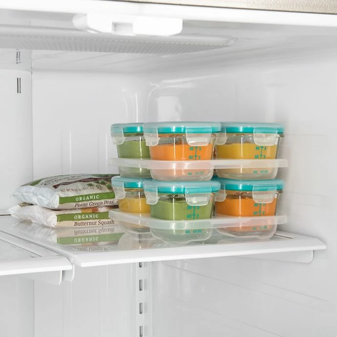 Portion, store, heat, and serve baby food with these OXO Tot Glass Baby Food Storage Blocks. The Baby Blocks are made of durable borosilicate glass, which is thermal-shock-resistant and include a stackable tray that makes for easy storage.