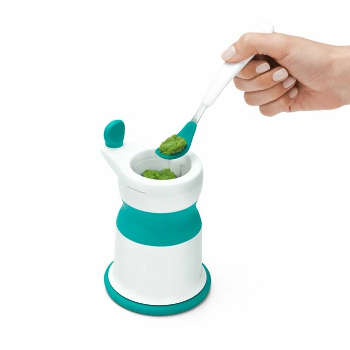 Make your own baby food and purees for your child in this Mash Maker Baby Food Mill from OXO Tot. It provides even consistency and can have liquid added as desired. It boasts a stable base and has a trough to catch excess liquids.