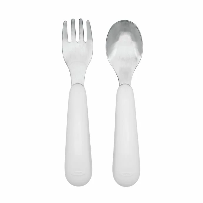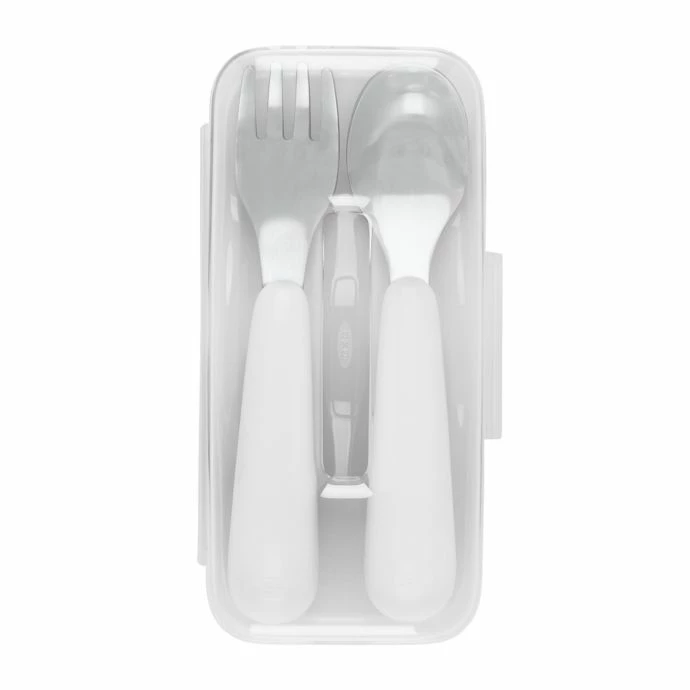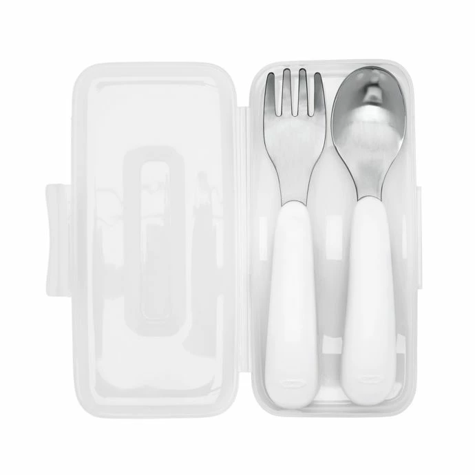 Bring the OXO Tot On the Go Fork and Spoon Set with Travel Case on your day out with your child. The curved handles are soft and non-slip for easy gripping, fork tines are effective, but have no sharp edges, and the spoon is deep for easy scooping.