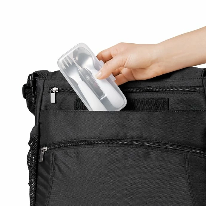 - Travel case fit easily into a purse, lunchbag, or diaper bag