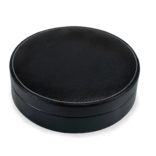The Pampered Grape Chablis Leather Box Set of wine accessories that is a welcome addition to anyone’s wine bar. The box of the Pampered Grape Chablis Leather Box Set is round (5-7/8″ diameter x 1-5/8″) and is made of black premium leatherette with white accent stitching. The Pampered Grape Chablis Leather Box Set makes a thoughtful gift for your wine-loving friends.