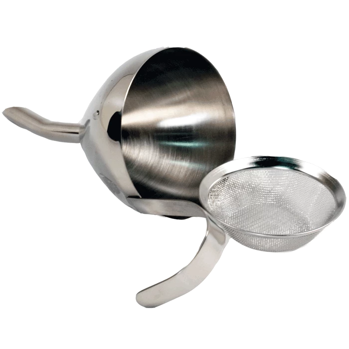 The Pampered Grape Decanting Funnel is a simple and aesthetically pleasing way to filter your wine. The Pampered Grape Decanting Funnel has a fine mesh screen that is removable for cleaning. By filtering away sediment, the Pampered Grape Decanting Funnel permits the pure color and taste of your wine to flourish. The Pampered Grape Decanting Funnel comes with a long spout to properly dispense wine and a handle for ease-of-use.