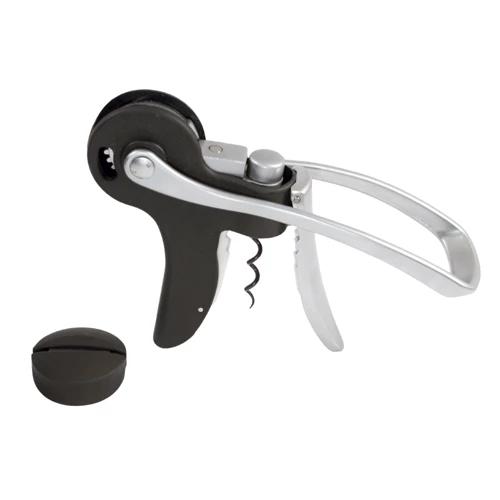 Pampered Grape’s Nutcracker Corkscrew is a premier metal-gear corkscrew that effortlessly removes even the most stubborn corks in one easy motion! This state of the art corkscrew utilizes a squeeze action hold to stabilize the bottle and does both jobs: remove the cork and then remove the cork from the screw. Thus saving you from getting your hands dirty from a cork which may have some wine or sediment on it.