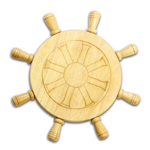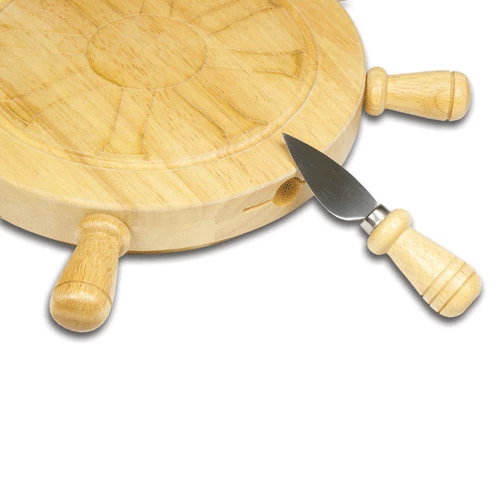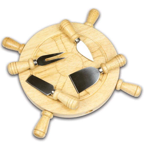 Get the party started with the Mariner! Designed to look like a shipβs helm, the Mariner is a great gift for those who love boating. Four cheese tools are secured in magnetic slots evenly spaced on the side of the board, their wooden handles resembling those of a shipβs helm. Four stationary handles on the side of the board help to βsteerβ the helm as the board rotates like a mini lazy Susan. Let the Mariner set your party in motion.