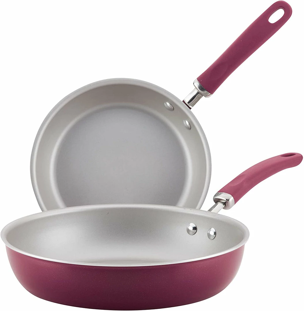 Double up with the radiant and solution-oriented, the Rachael Ray Create Delicious Aluminum Nonstick Deep Frying Pan Set for a high-performance and easy convenience that’s twice as nice with two essential Frying Pans featuring a deeper and more versatile pan design. Featuring vibrant, shimmering color combined with value-driven functionality, this Set of Frying Pans brings on Rachael’s always-reliable performance with durable aluminum construction for ultra-even heating and browning.Β