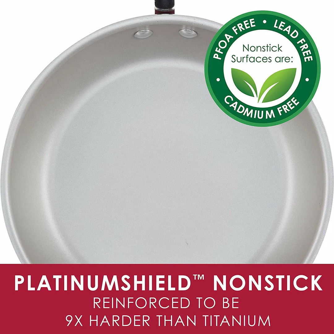 Radiant and solution-oriented, the Rachael Ray Create Delicious 9.5-Inch Aluminum Nonstick Deep Frying Pan brings high-performance and easy convenience to an essential pan made even more versatile with a deeper design. Featuring vibrant, shimmering color combined with value-driven functionality, this indispensable fry pan brings on Rachael’s always-reliable performance with durable aluminum construction for ultra-even heating and browning. Made with higher sides for an enhanced cooking surface, this smart skillet features PlatinumShield(tm) Technology silver nonstick reinforced to be 9X harder than titanium.
