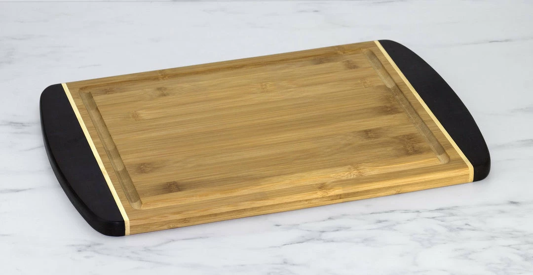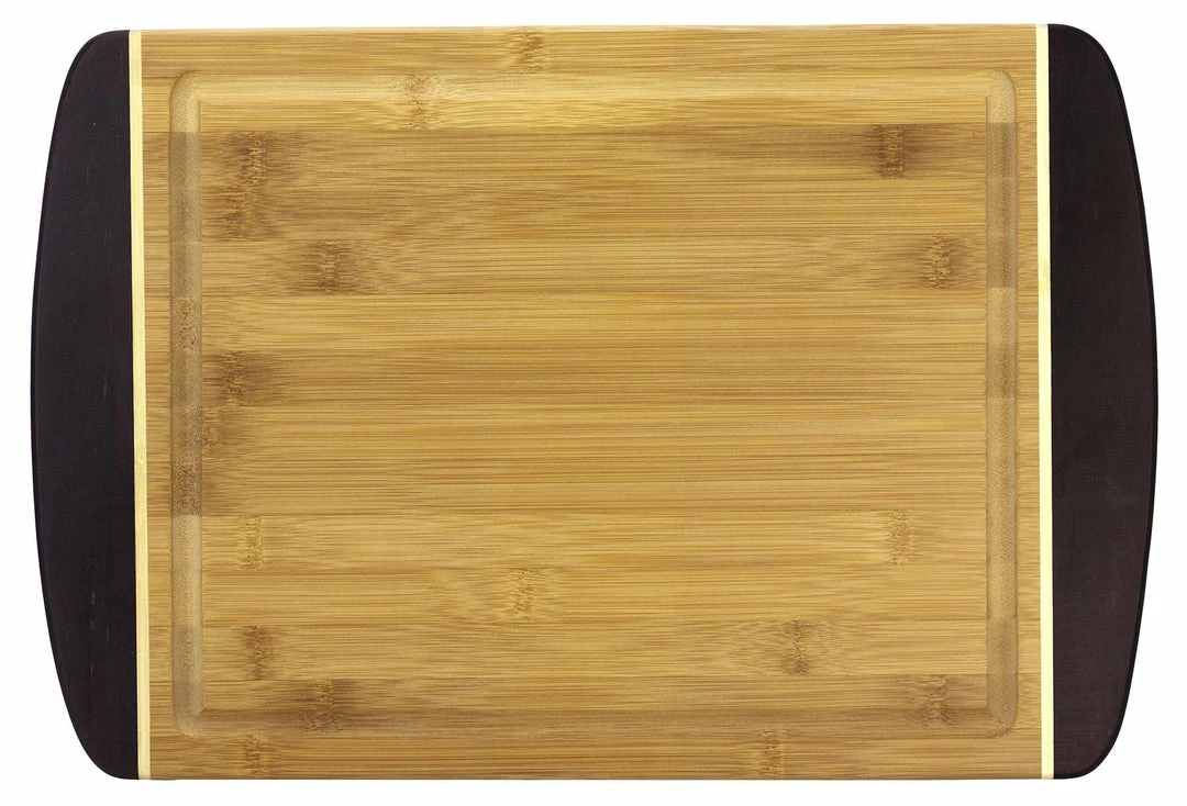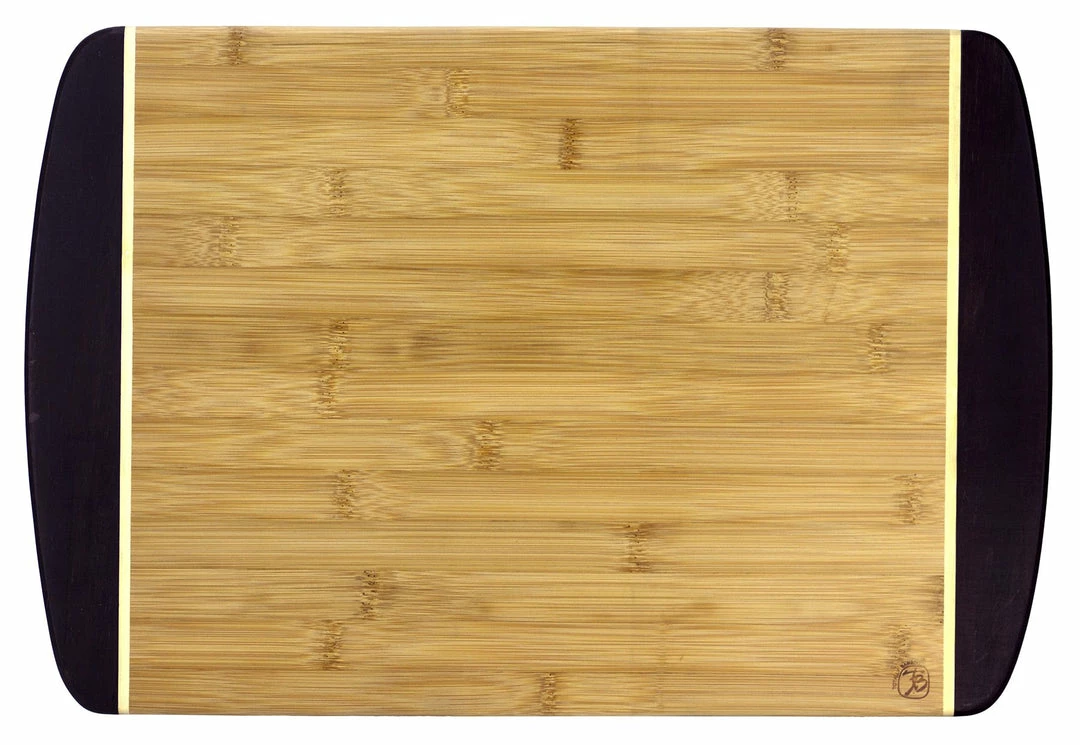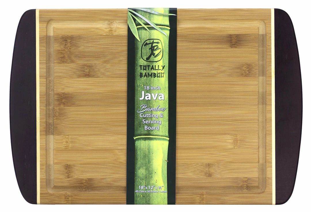 Ourย Java cutting boardsย areย based on the original Hawaiian collection,ย but in reverse.ย Dark crushed bamboo end caps frame the flat grain body of the board, and light inlay stripes add the finishing touch.ย The various colors are created by steaming the bamboo, which caramelizes the sugarsย and darkensย the wood.ย This natural processย means there are no stains or dyes to wear or wash off, keeping these boards looking beautiful for years to come.