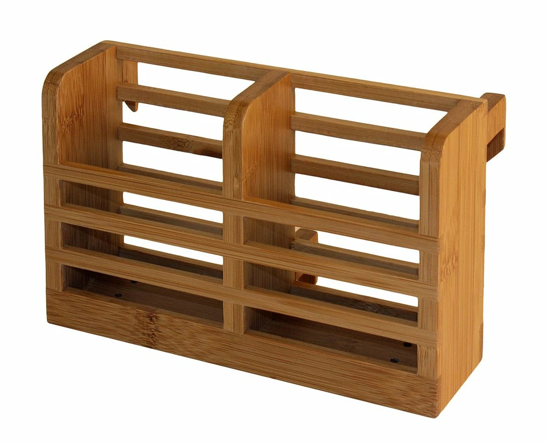 This bamboo Dish Rack Utensil Holder hooks onto the side of your dish rack to keep your flatware and utensils under control.Β Use with our regular or compact dish racks or for stand-alone drying.