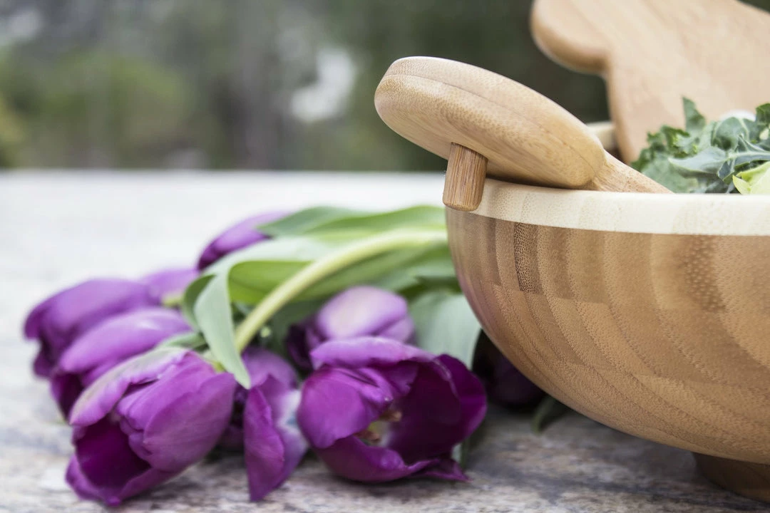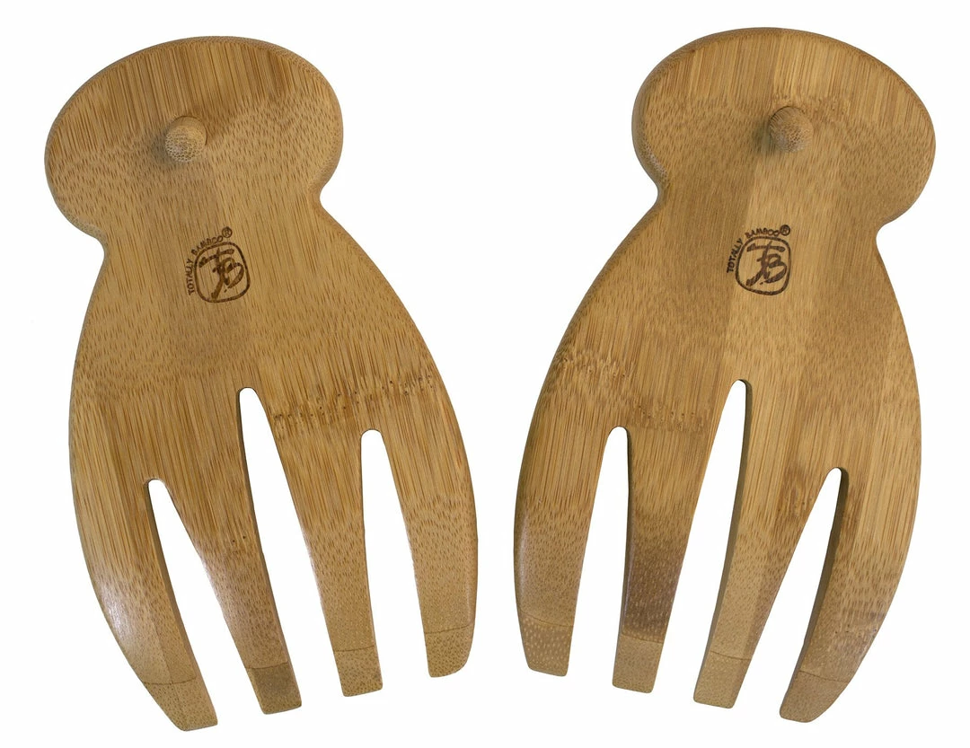 Let’s face it, the easiest tools for tossing and serving salad are your own two hands. But the next best and much less messy alternative is a pair of our natural bamboo salad hands. Toss, mix and serve with ease, while the little button on the back of each ‘wrist’ keeps the hands from sliding into your bowl. Oh, and did we mention pasta? From angel hair to ziti, these hands serve it up with ease. Each hand measures 7″ long x 4″ wide.